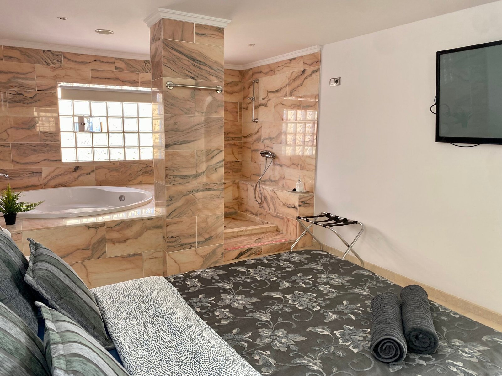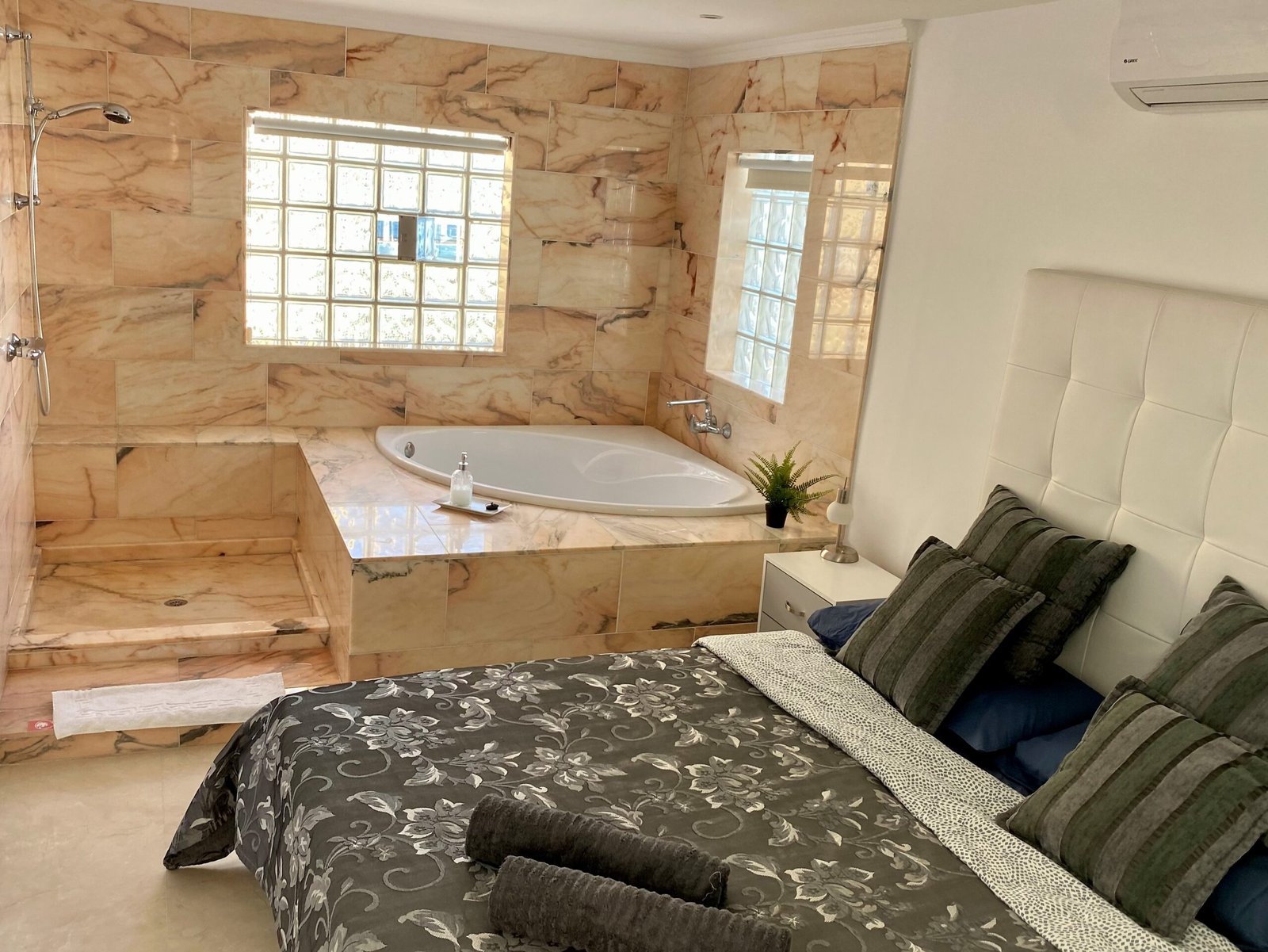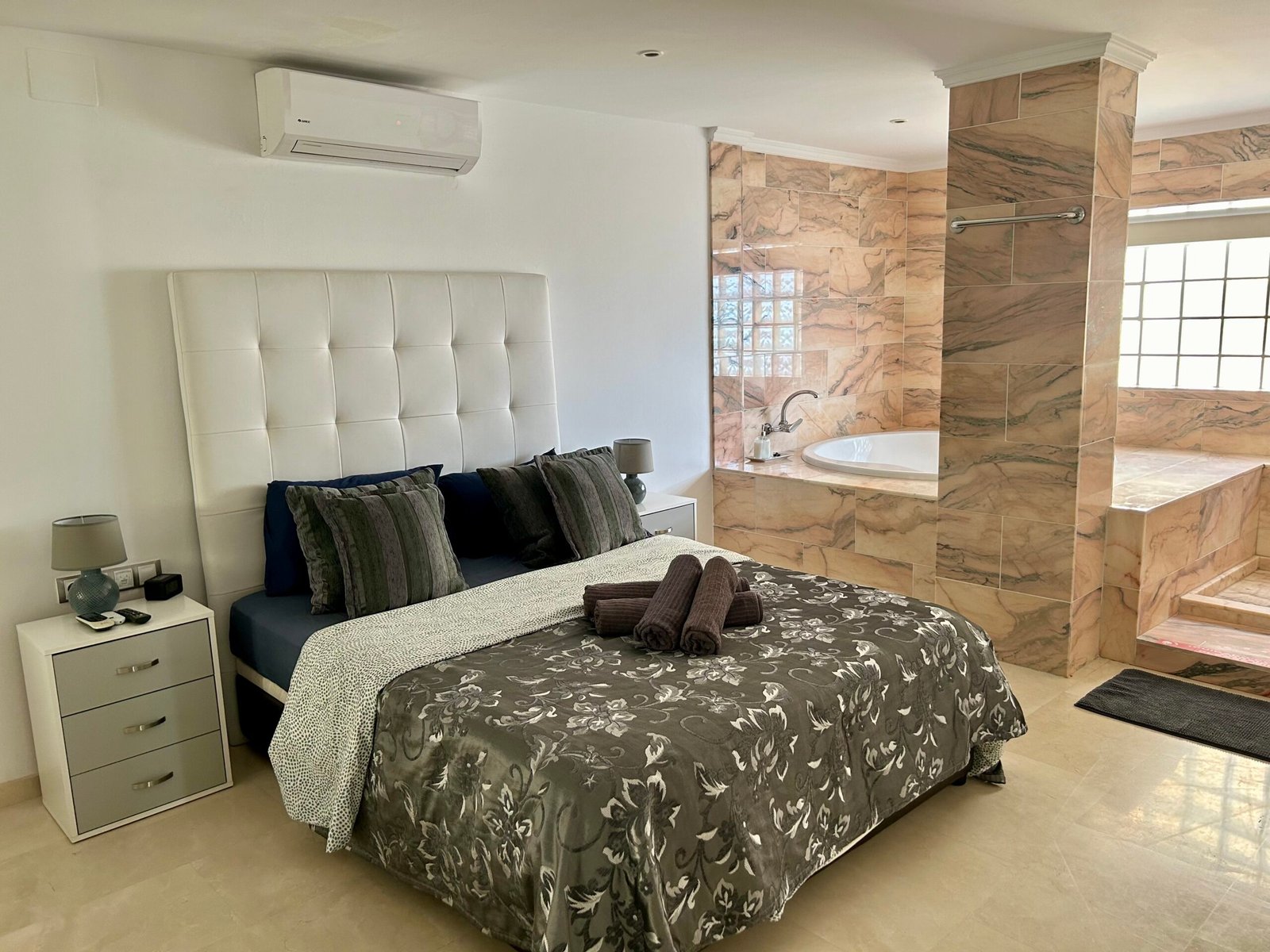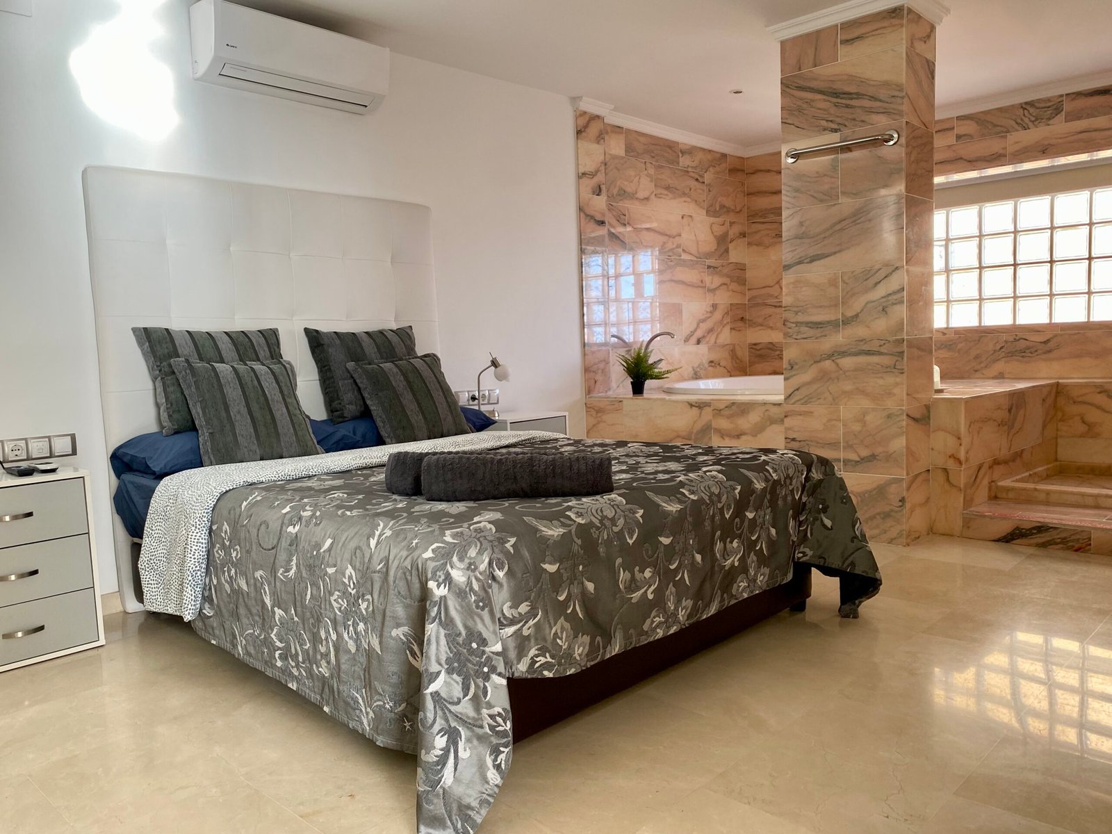 2 bedrooms with marble bathrooms