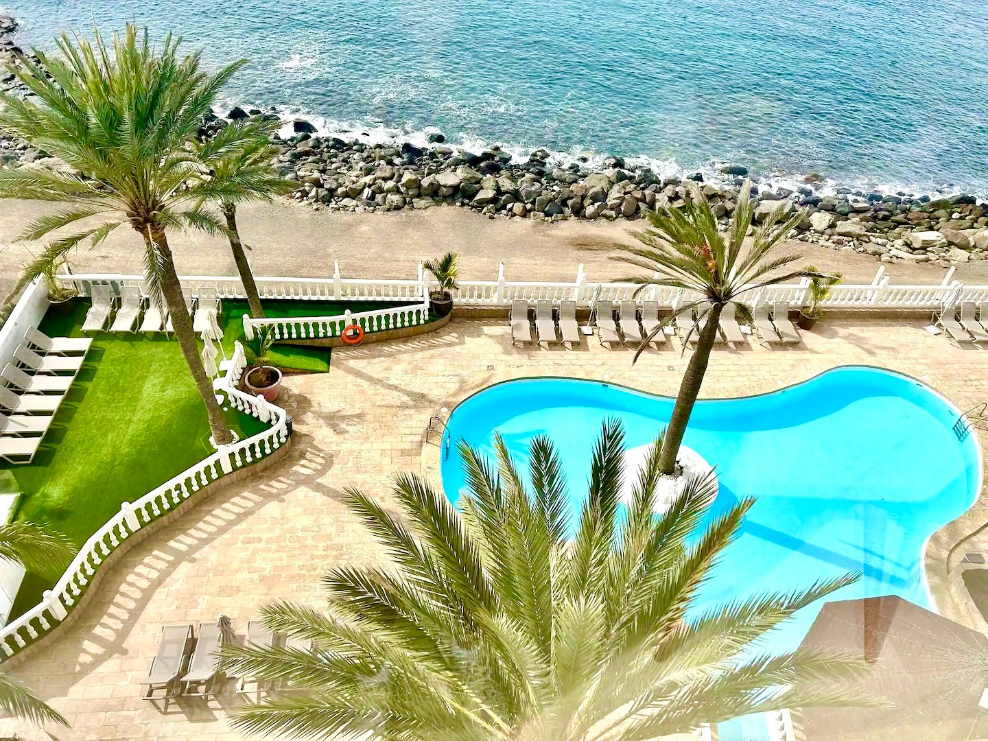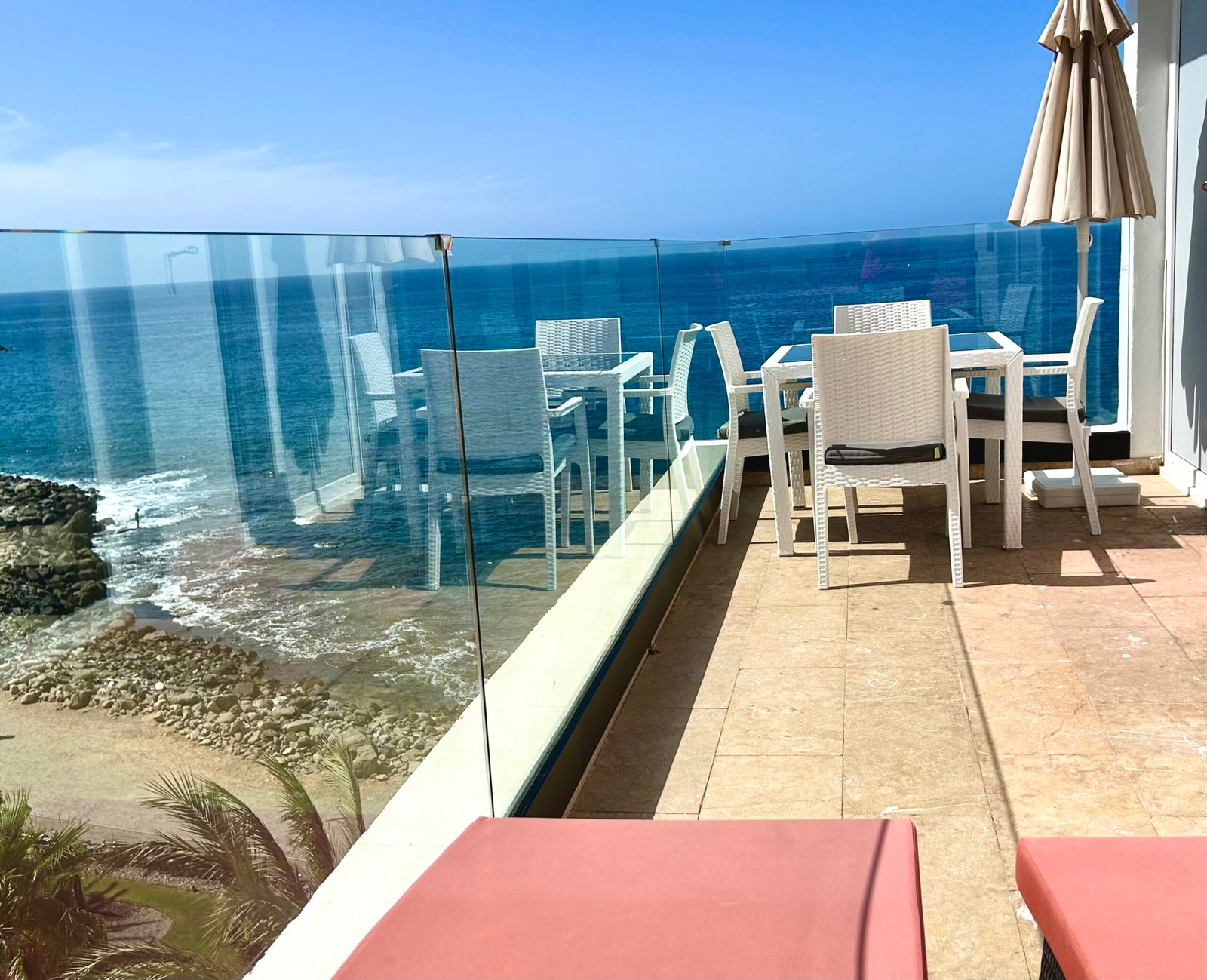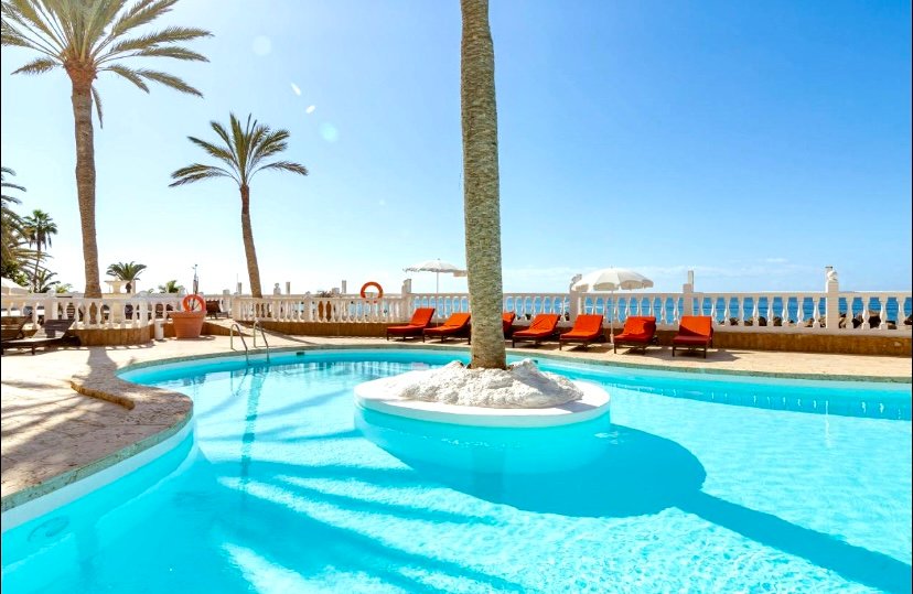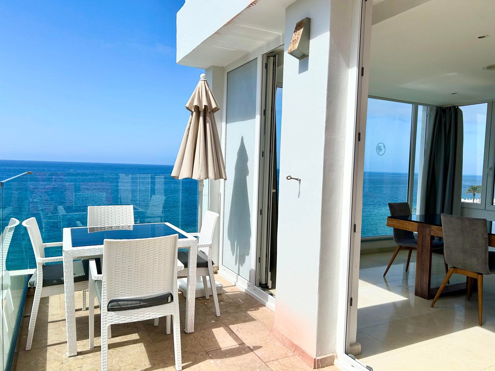 Beautiful luxurious 2 bedroom suite on the first row to the beach, with incredible panoramic sea and sunset views. It has 2 bedrooms, each with its own bathtub, a marble bathroom with a double shower and an extra toilet bathroom. A fully equipped kitchen and pool access. With direct access to the beach, it is a perfect place to unwind as a couple or with the family. It also offers an ideal terrace for having breakfast or sunbathing.